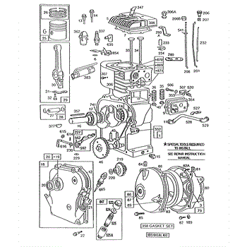 Parts for Briggs & Stratton 130292-1754-01: Cylinder,Gearcase,Piston Grp Parts