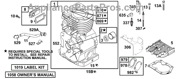 Parts for Briggs & Stratton 133232-1013-E1: Cylinder Group Parts
