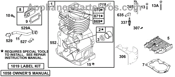 Parts for Briggs & Stratton 134202-0114-01: Cylinder Group Parts