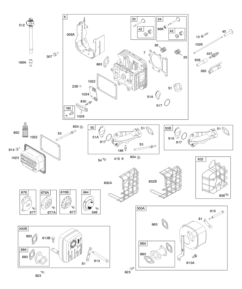 Parts for Briggs & Stratton 31R607-0001-B1: Cylinder Head, Exhaust System, Intake Manifold, Valves Parts