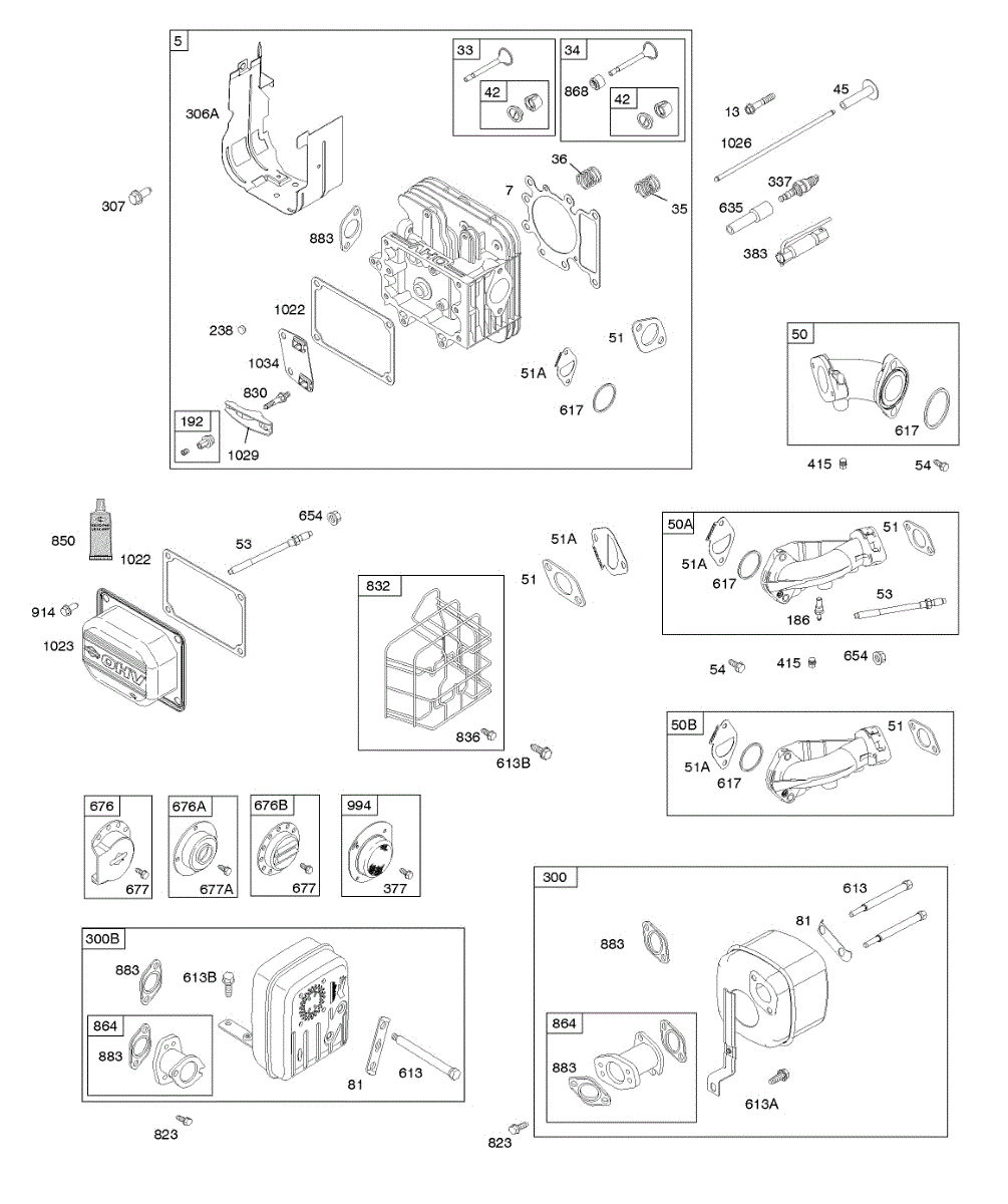 Parts for Briggs & Stratton 31R975-0036-B1: Cylinder Head, Exhaust System, Intake Manifold, Valves Parts