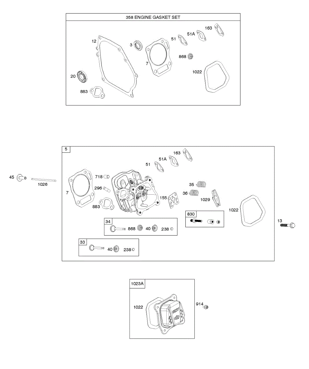 Parts for Briggs & Stratton 106232-0115-H7: Cylinder Head, Gasket Set Parts