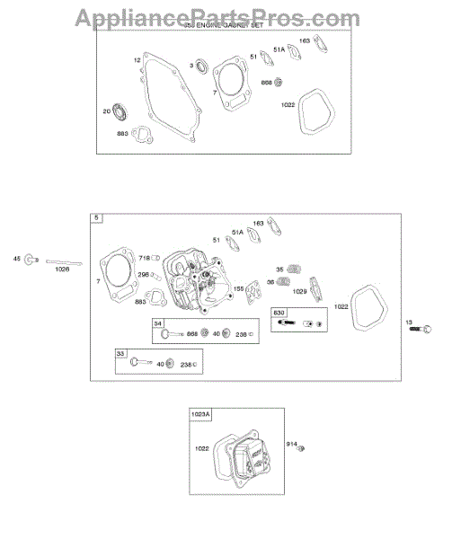 Parts for Briggs & Stratton 106232-0166-H8: Cylinder Head, Gasket Set Parts