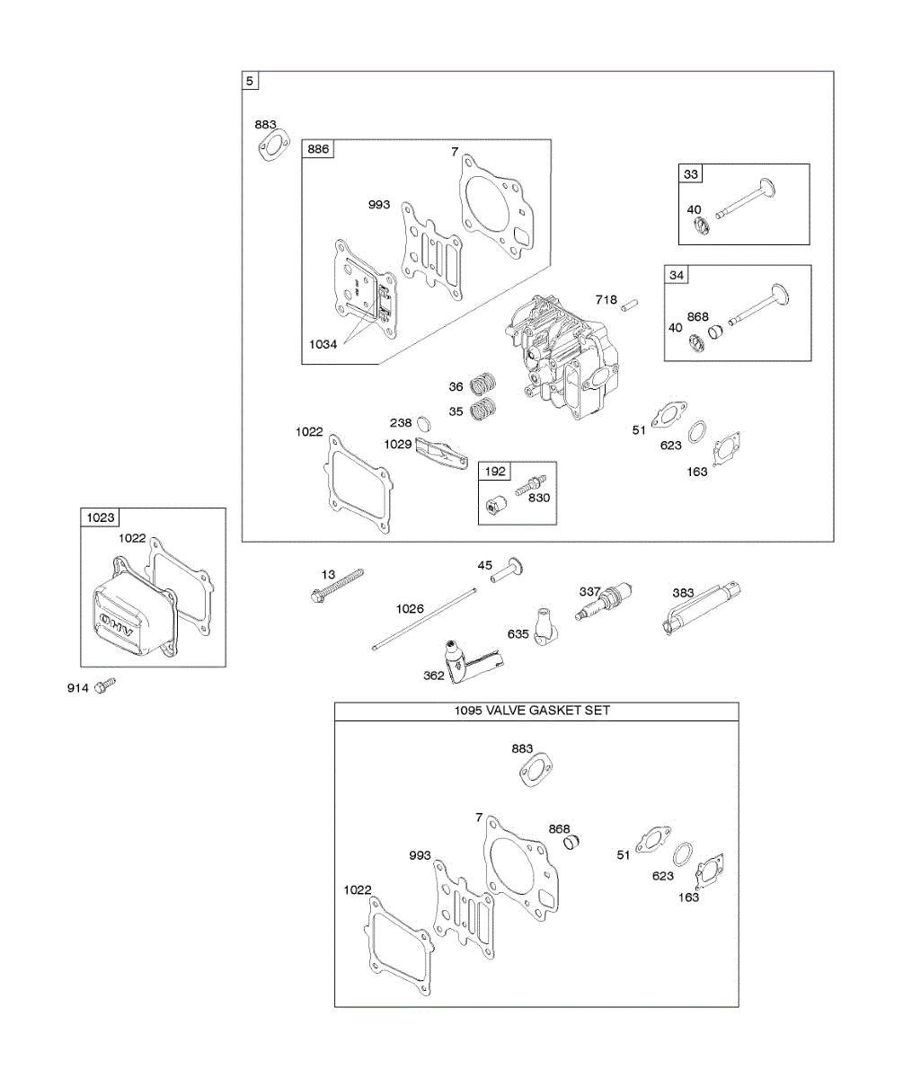 Parts for Briggs & Stratton 112P02-0110-B1: Cylinder Head, Gasket Set-Valves, Valves Parts
