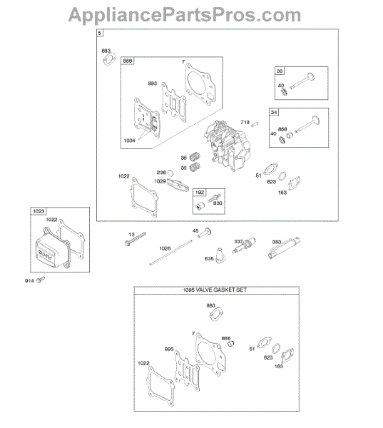 Parts for Briggs & Stratton 114P02-0129-B3: Cylinder Head, Gasket Set-Valves, Valves Parts