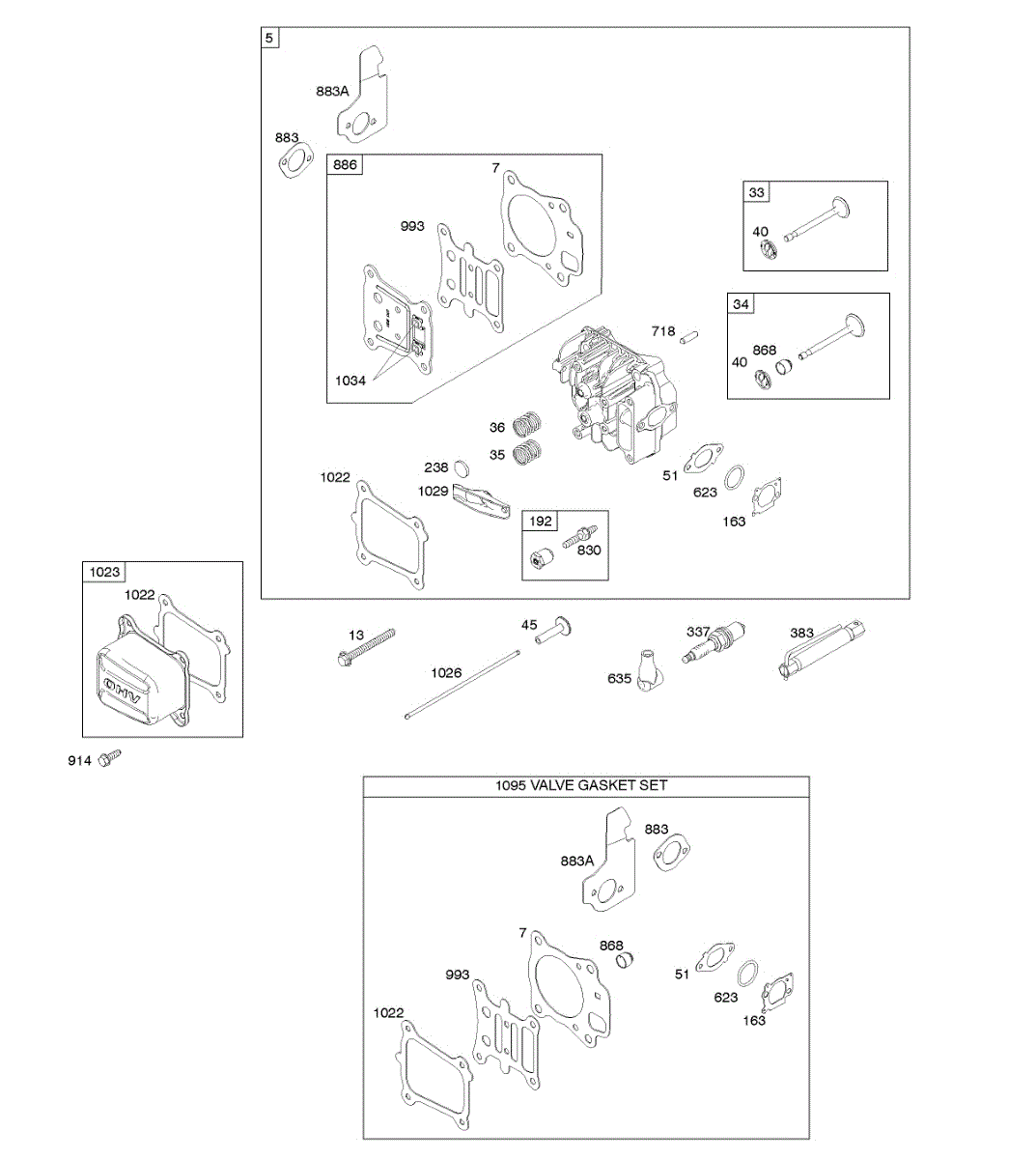 Parts for Briggs & Stratton 11P902-0119-B1: Cylinder Head, Gasket Set-Valves, Valves Parts