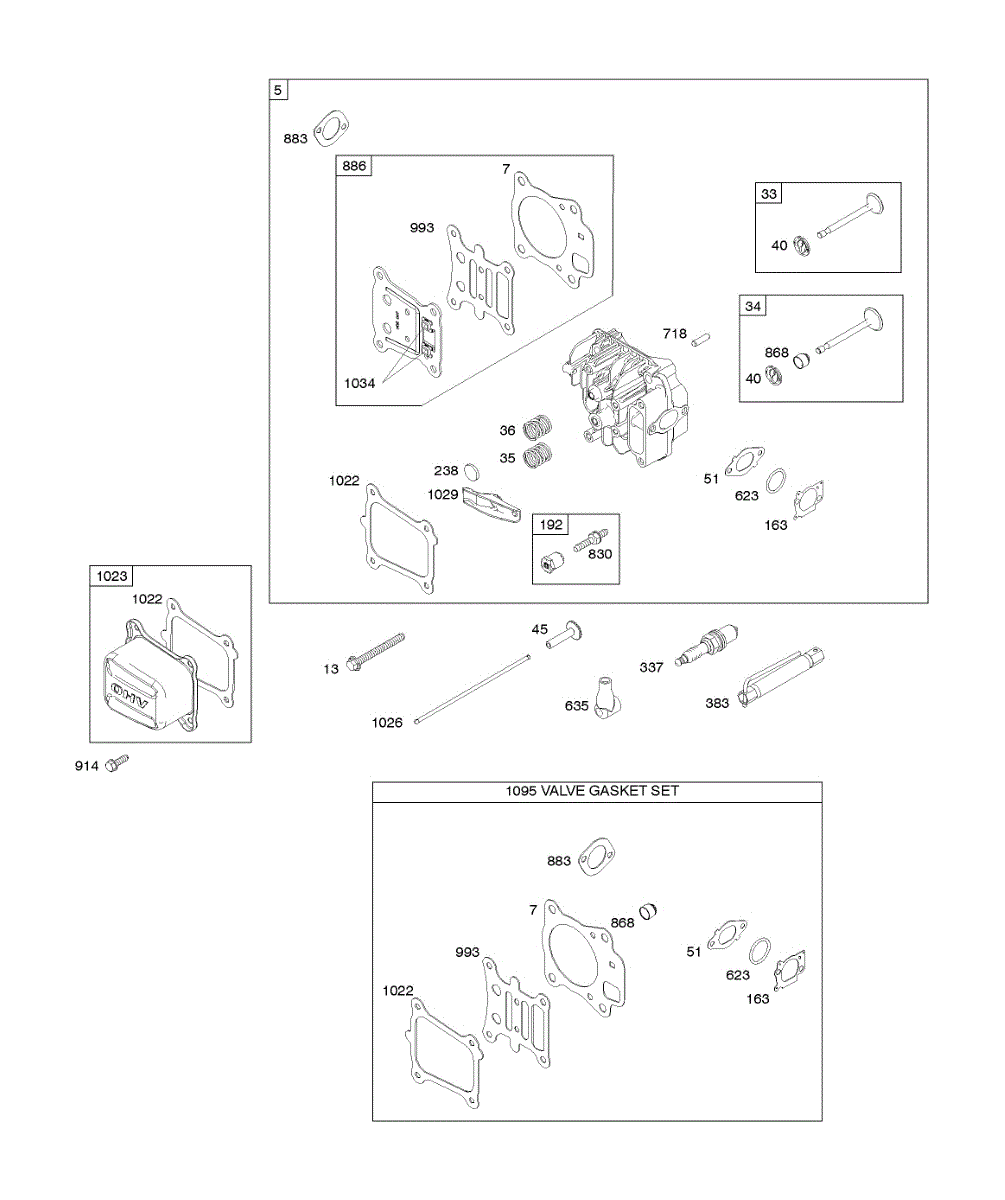 Parts for Briggs & Stratton 122R02-0116-B1: Cylinder Head, Gasket Set-Valves, Valves Parts