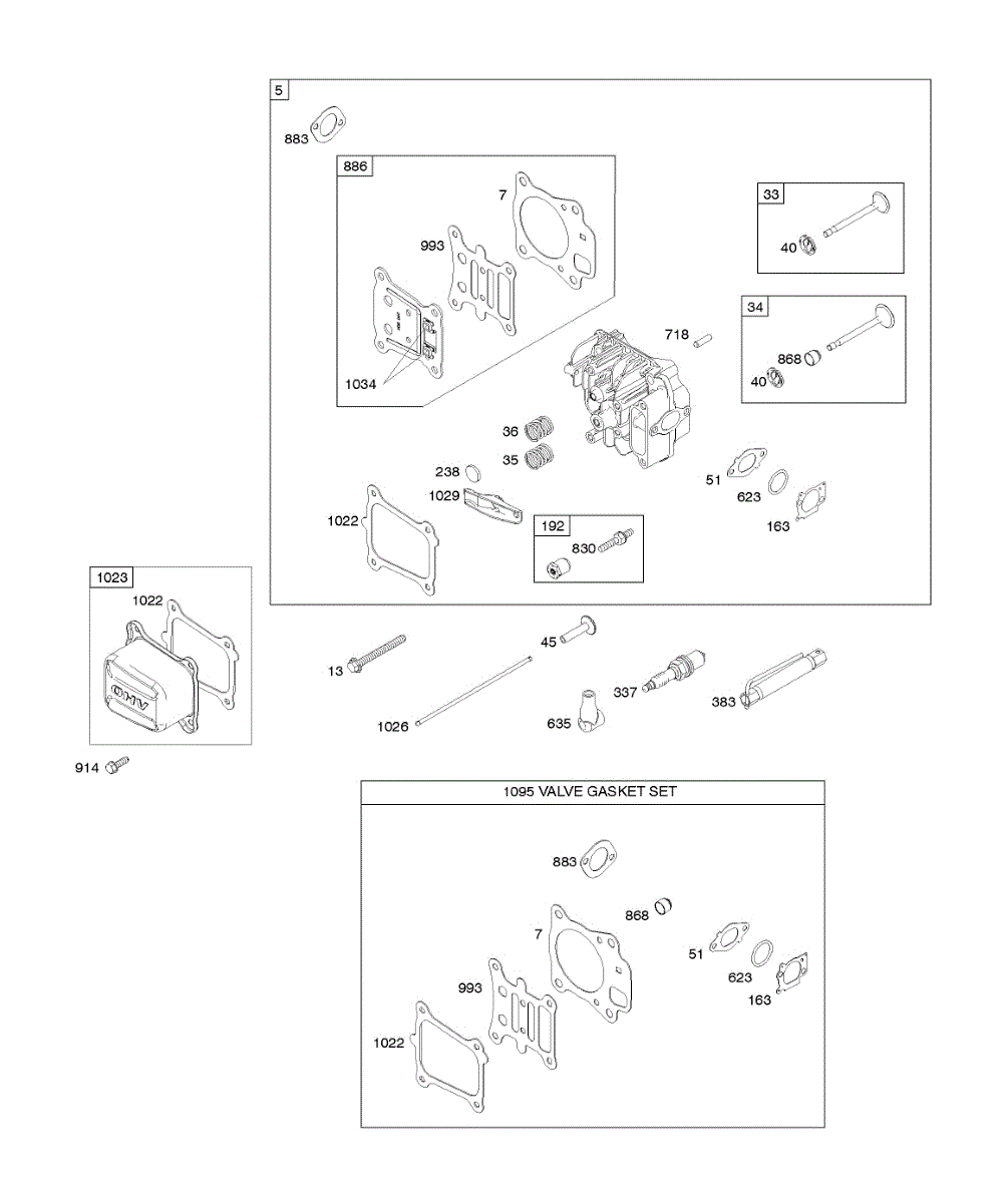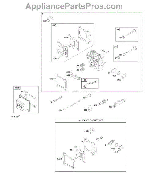 Parts for Briggs & Stratton 122S02-0002-H1: Cylinder Head, Gasket Set-Valves, Valves Parts