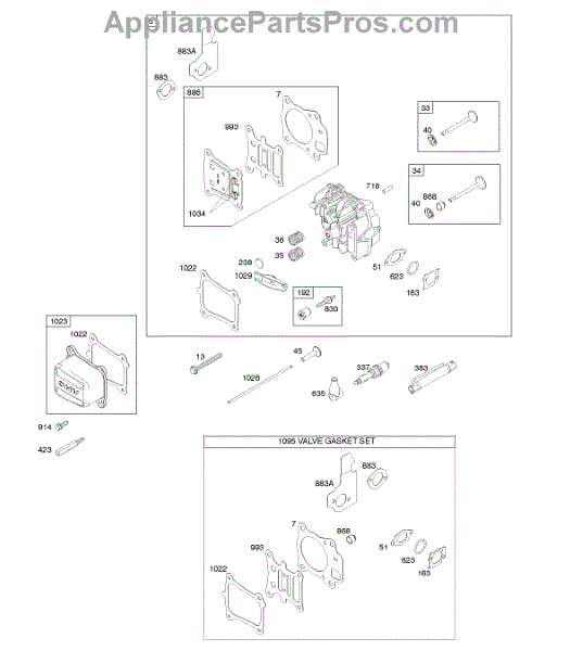 Parts for Briggs & Stratton 12Q902-0135-B1: Cylinder Head, Gasket Set-Valves, Valves Parts