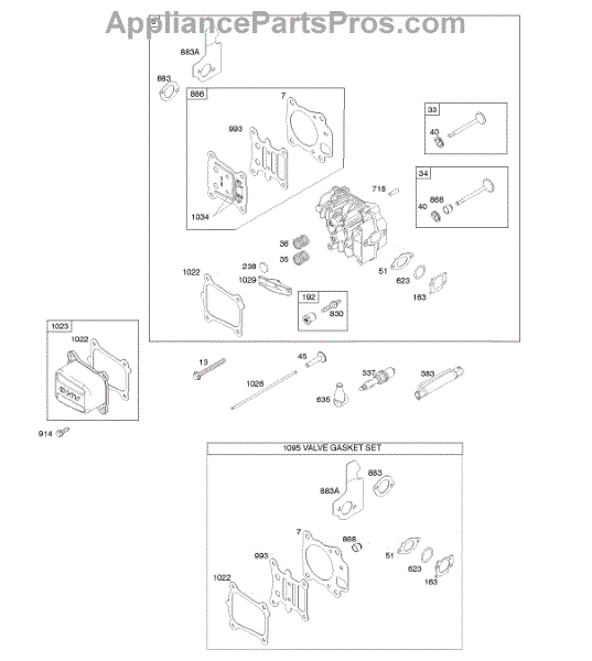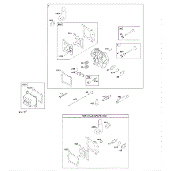 Parts for Briggs & Stratton 12R902-0112-B1: Cylinder Head, Gasket Set-Valves, Valves Parts