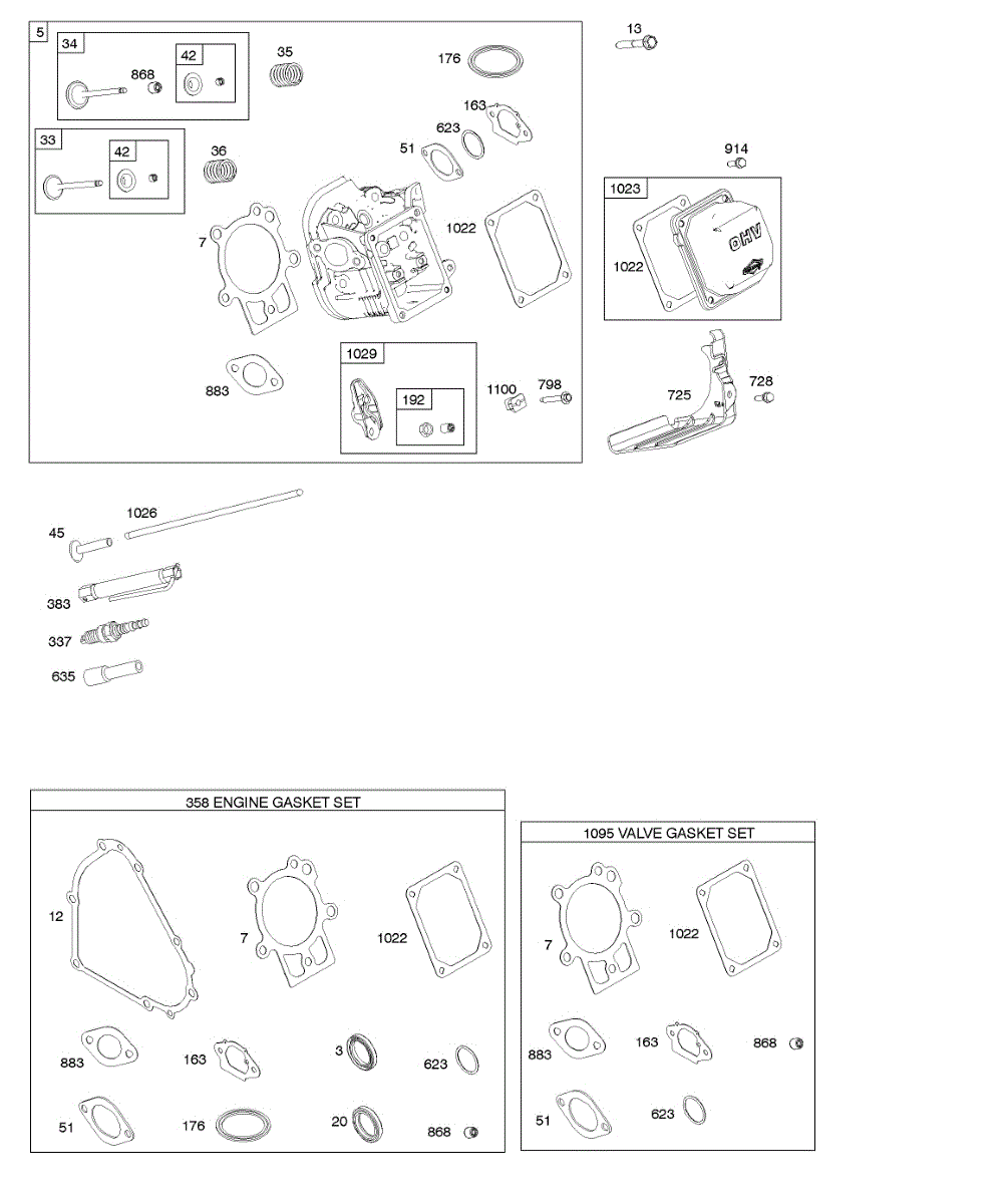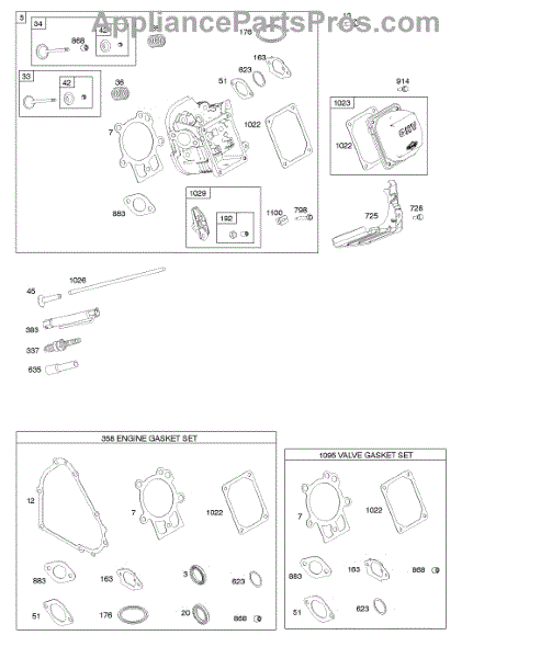 Parts for Briggs & Stratton 19L237-0011-G1: Cylinder Head, Gasket Set - Engine, Gasket Set -Valve Parts