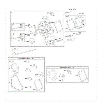 Parts for Briggs & Stratton 205312-0214-B1: Cylinder Head, Gasket Set - Engine, Gasket Set - Valve, Valves Parts