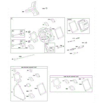 Parts for Briggs & Stratton 20A414-0115-E1: Cylinder Head, Gasket Set - Engine, Gasket Set - Valve, Valves Parts