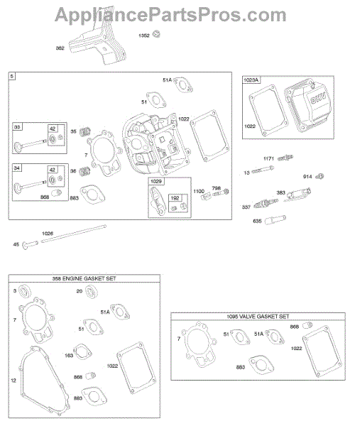 Parts for Briggs & Stratton 20A414-0118-E1: Cylinder Head, Gasket Set - Engine, Gasket Set - Valve, Valves Parts