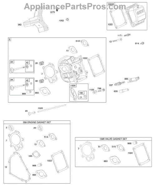 Parts for Briggs & Stratton 20C414-0206-E1: Cylinder Head, Gasket Set - Engine, Gasket Set - Valve, Valves Parts