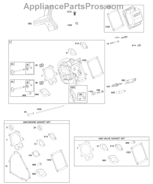Parts for Briggs & Stratton 20E414-0162-E1: Cylinder Head, Gasket Set - Engine, Gasket Set - Valve, Valves Parts