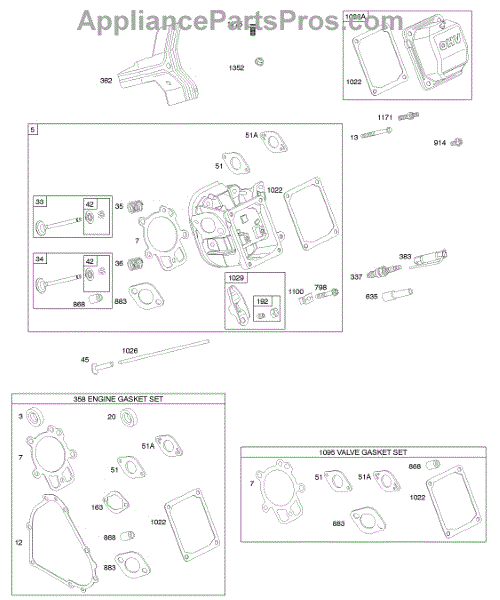 Parts for Briggs & Stratton 20G416-0110-E1: Cylinder Head, Gasket Set - Engine, Gasket Set - Valve, Valves Parts