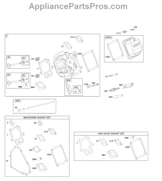 Parts for Briggs & Stratton 20P214-0698-E1: Cylinder Head, Gasket Set - Engine, Gasket Set - Valve, Valves Parts