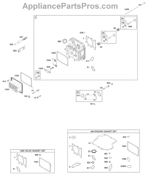 Parts for Briggs & Stratton 216907-0050-E1: Cylinder Head, Gasket Set - Engine, Gasket Set - Valve, Valves Parts
