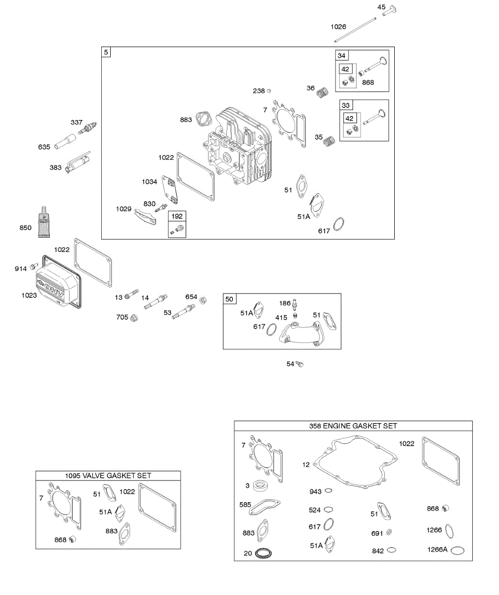 Parts for Briggs & Stratton 217907-0142-G1: Cylinder Head, Gasket Set - Engine, Gasket Set - Valve, Intake Manifold, Valves Parts
