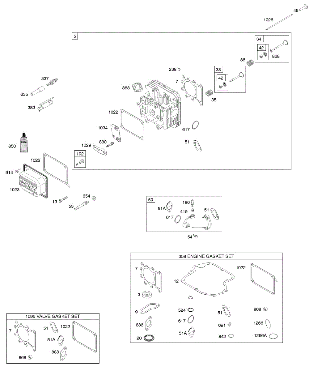 Parts for Briggs & Stratton 219707-0380-B1: Cylinder Head, Gasket Set - Engine, Gasket Set - Valve, Intake Manifold Parts