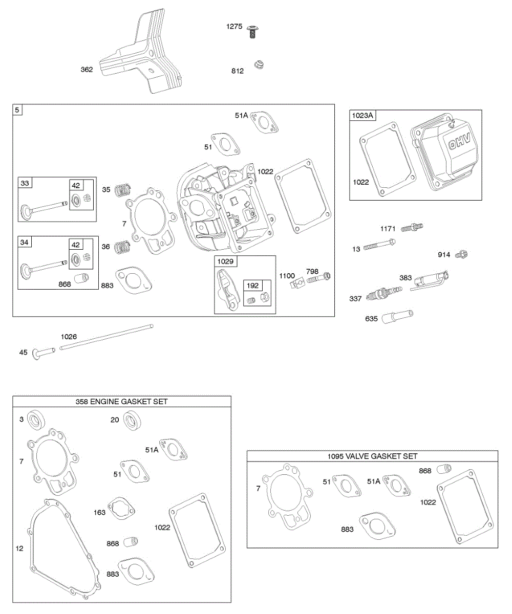 Parts for Briggs & Stratton 21C214-0114-E1: Cylinder Head, Gasket Set - Engine, Gasket Set - Valve, Valves Parts