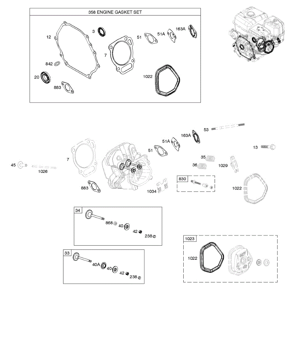 Parts for Briggs & Stratton 25U232-0002-01: Cylinder Head, Gasket Sets Parts