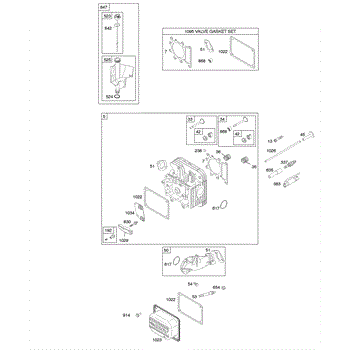 Parts for Briggs & Stratton 281H07-0384-E1: Cylinder Head, Gasket Set - Valve, Lubrication, Valves Parts