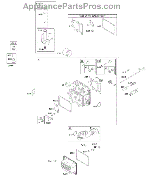 Parts for Briggs & Stratton 285H77-0120-E1: Cylinder Head, Gasket Set - Valve, Lubrication, Valves Parts