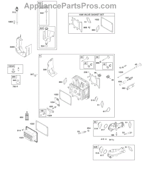 Parts for Briggs & Stratton 31C707-1329-B1: Cylinder Head, Gasket Set - Valve, Lubrication, Valves Parts