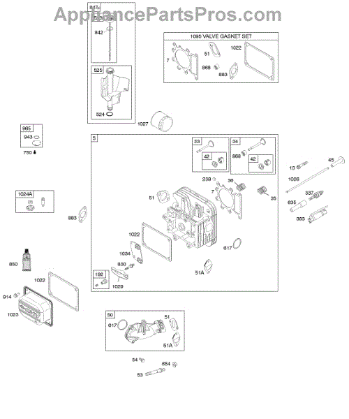 Parts for Briggs & Stratton 31D777-0339-E1: Cylinder Head, Gasket Set - Valve, Lubrication, Valves Parts