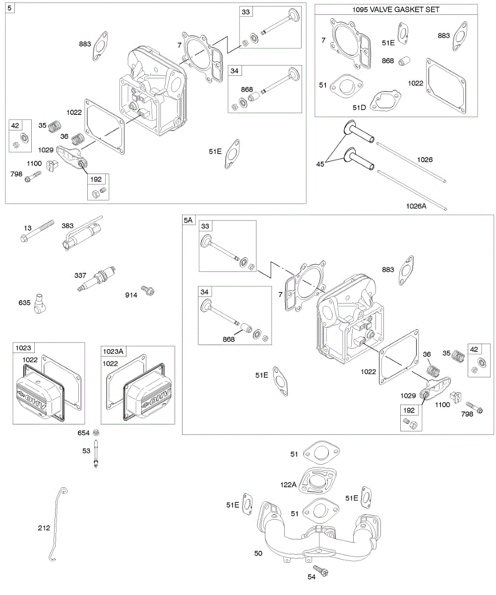 Parts for Briggs & Stratton 407577-0346-E1: Cylinder Head, Gasket Set-Valve, Intake Manifold, Valves Parts