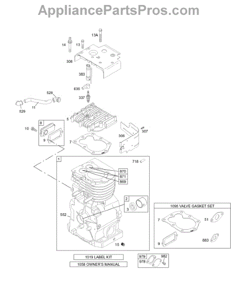 Parts for Briggs & Stratton 133432-1072-E1: Cylinder, Head, Kits / Gaskets Sets - Valves Parts
