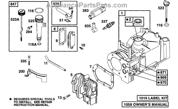 Parts for Briggs & Stratton 095902-0102-99: Cylinder, Head, Oil Fill Parts