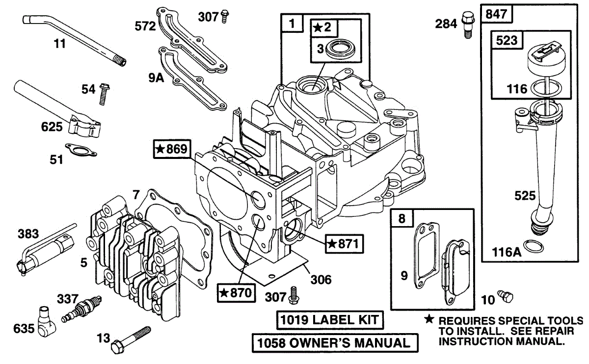 Parts for Briggs & Stratton 12B802-0808-01: Cylinder, Head, Oil Fill Parts