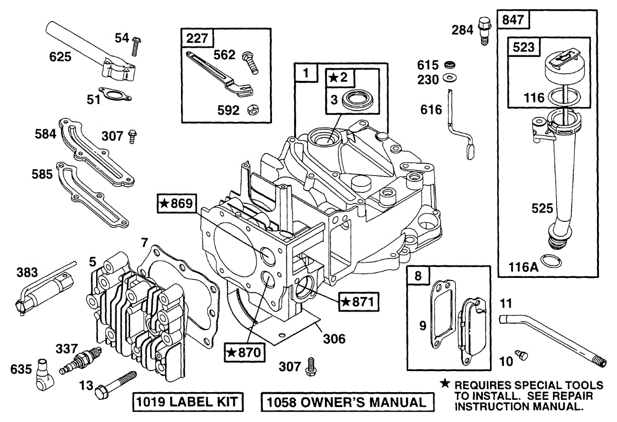 Parts for Briggs & Stratton 12D802-0510-99: Cylinder, Head, Oil Fill Parts