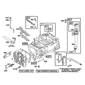 Parts for Briggs & Stratton 12E787-0704-99: Cylinder, Head, Oil Fill Parts