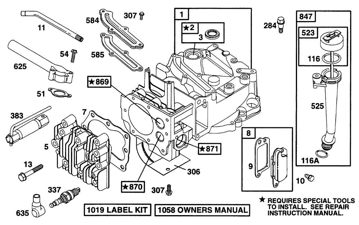 Parts for Briggs & Stratton 12M802-5517-01: Cylinder, Head, Oil Fill Parts