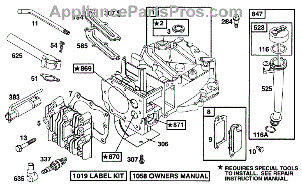 Parts for Briggs & Stratton 12M802-5521-01: Cylinder, Head, Oil Fill Parts