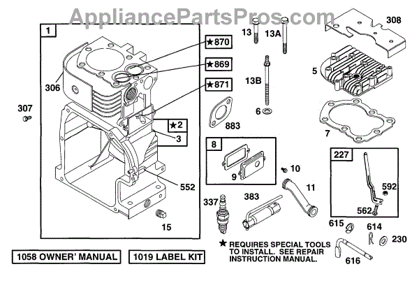 Parts for Briggs & Stratton 083412-0105-02: Cylinder, Head Parts