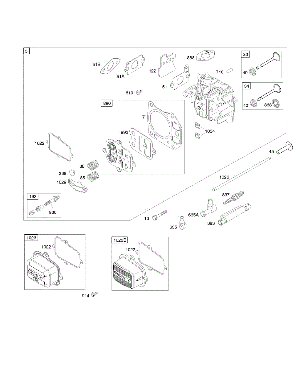 Parts for Briggs & Stratton 122607-0210-B1: Cylinder Head Parts