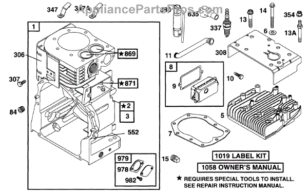 Parts for Briggs & Stratton 170432-6113-02: Cylinder, Head Parts
