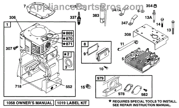 Parts for Briggs & Stratton 195432-1002-05: Cylinder, Head Parts