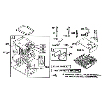 Parts for Briggs & Stratton 221432-0155-03: Cylinder, Head Parts