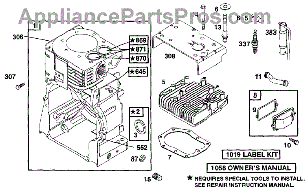 Parts for Briggs & Stratton 222412-0601-01: Cylinder, Head Parts