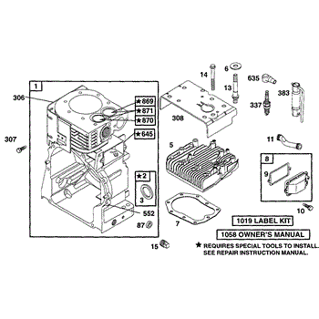 Parts for Briggs & Stratton 222413-0720-01: Cylinder, Head Parts