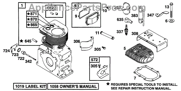 Parts for Briggs & Stratton 233431-1153-01: Cylinder, Head Parts