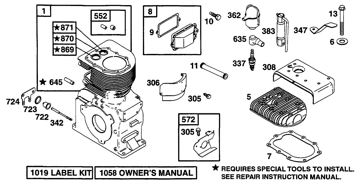 Parts for Briggs & Stratton 233431-2524-02: Cylinder, Head Parts