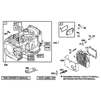 Parts for Briggs & Stratton 252707-0615-99: Cylinder, Head Parts