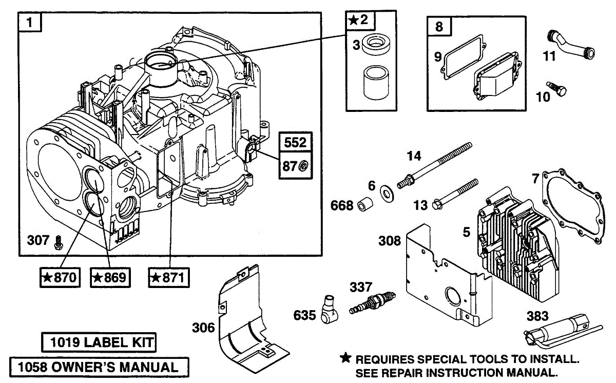 Parts for Briggs & Stratton 253707-0173-02: Cylinder, Head Parts